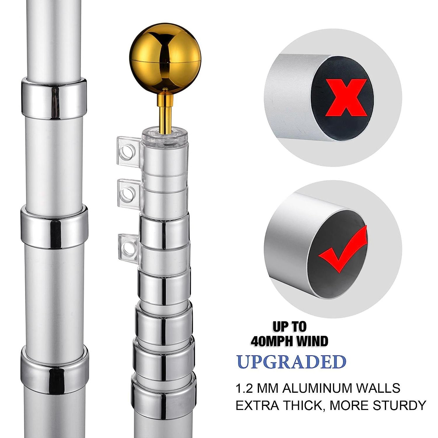 4.Flag-Worthy Quality: Designed to complement your patriotism, this flag pole pairs perfectly with 100% polyester flags, ensuring they wave elegantly in the breeze and resist fading, even under direct sunlight.