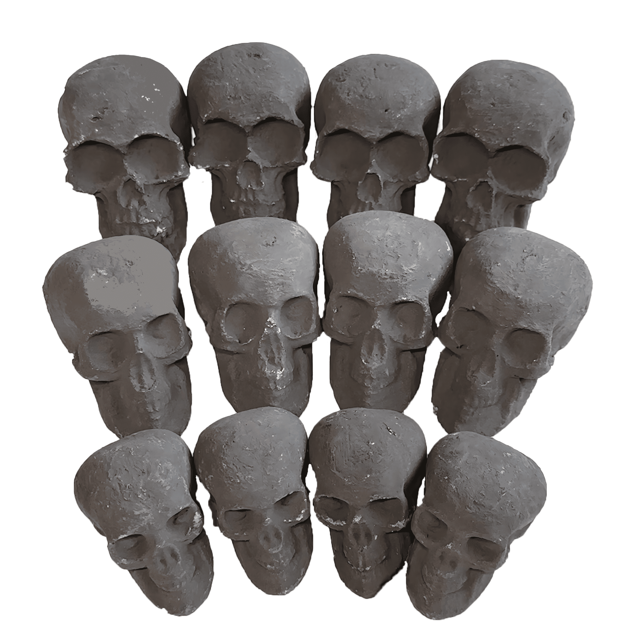 I highly recommend our skull fire logs to you. It's really, really, really cool!It has a total of 4 sizes, the largest is no bigger than a palm, the smallest is just a thumb. Therefore, his adaptability is particularly strong, it can be used in candlesticks, alcohol stoves, and can also be combined in fire pits and fireplaces, wherever it is sure to be the focus. Each one of our skull firepit heads is handmade, you can fully feel the vividness of their shapes, each one is very similar, but they are not the same, you put them there, the shapes are very vivid. We specially set 7/10/12 as a group, making it very easy to put together, you can just buy one to use the size you need, but also try different sizes of wonderful combinations, it will definitely decorate your party, let everyone marvel at your creativity.