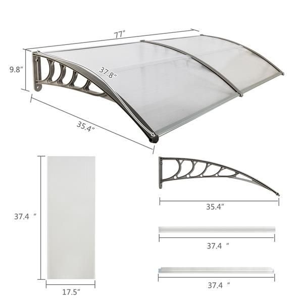 Build a mini shelter for resisting rain or scorching sun at the gate or window! You may feel it wonderful by using our 200 x 100 Household Application Door & Window Rain Cover Eaves Canopy! This is a superb design integrating high-class ABS and polycarbonate materials; durable and wear-resistant to use. Aluminum bracket could strongly sustain this canopy. It bulges to shape a small shield. Quite easy to install and remove! It also acts a decoration for your house! Don't miss such a good chance!