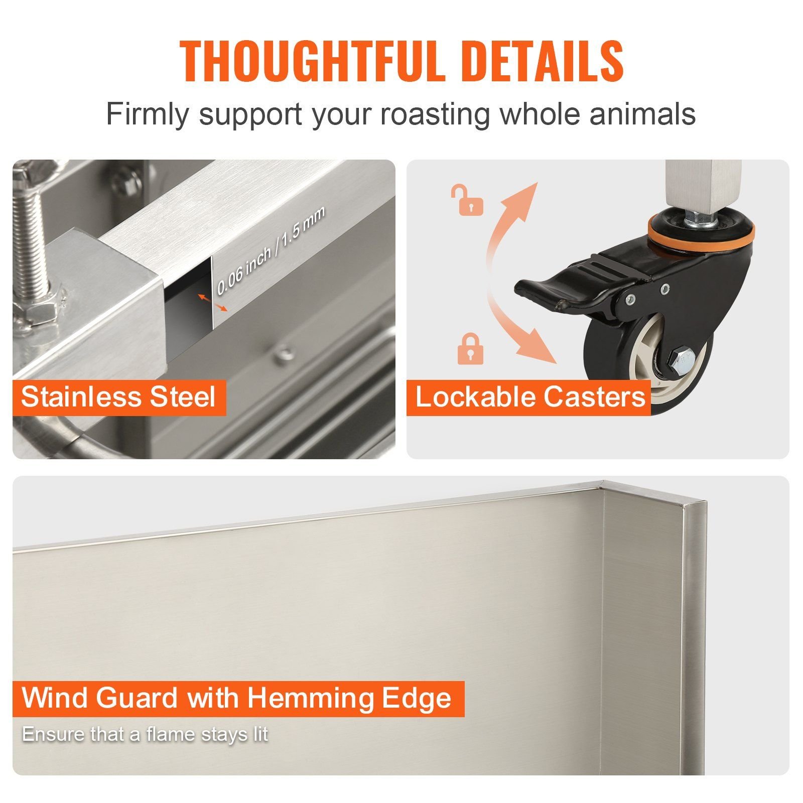 2.4-Level Height Adjustable: Designed with 4 holes placed on different heights for effortless adjustment of the hog roaster. The rotisserie kit has been crafted to control the cooking temperature. Adjustable height: 4.3"-12.2".