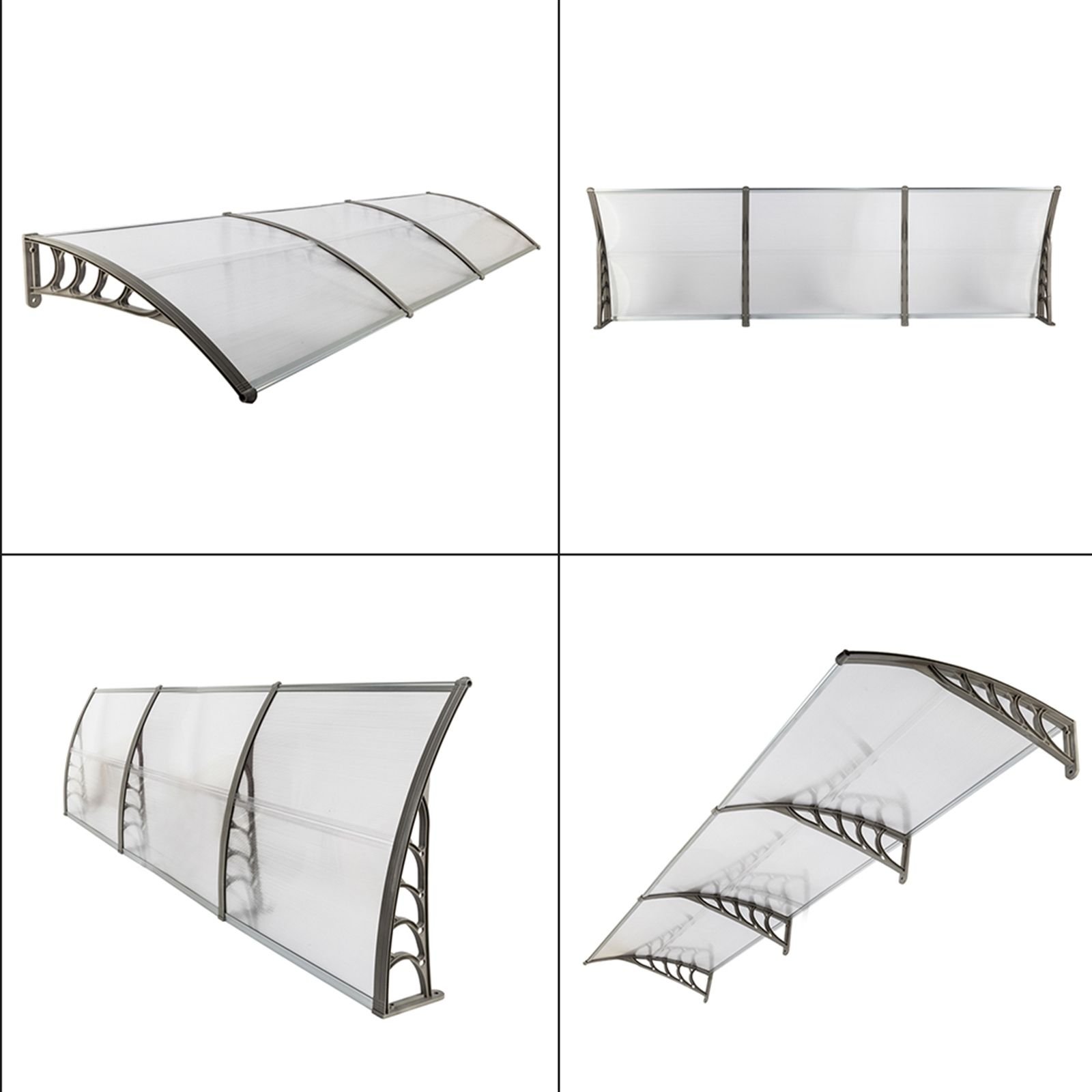 Build a mini shelter for resisting rain or scorching sun at the gate or window! You may feel it wonderful by using our 300 x 100 Household Application Door & Window Rain Cover Eaves Canopy! This is a superb design integrating high-class ABS and polycarbonate materials; durable and wear-resistant to use. Aluminum bracket could strongly sustain this canopy. It bulges to shape a small shield. Quite easy to install and remove! It also acts a decoration for your house! Don't miss such a good chance!