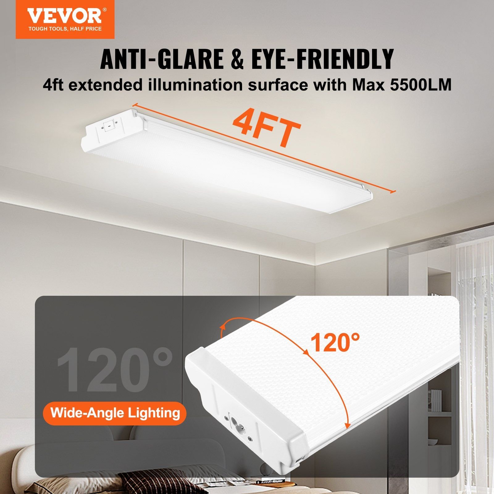 Ready to create a cozy and brilliantly lit indoor atmosphere? Look no further than our 4FT LED wraparound light. With 5500 LM high brightness, 6500K high-brightness white light, and series installation, it meets all your lighting needs with ease. Illuminate your space with comfort and style!
