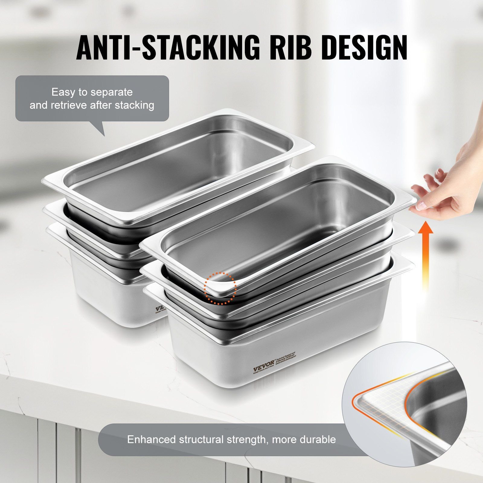 Home > VEVOR 6 Pack Hotel Pans, 1/3 Size Anti-Jam Steam Pan, 0.8mm Thick Stainless Steel Restaurant Steam Table Pan, 4-Inch Deep Commercial Table Pan