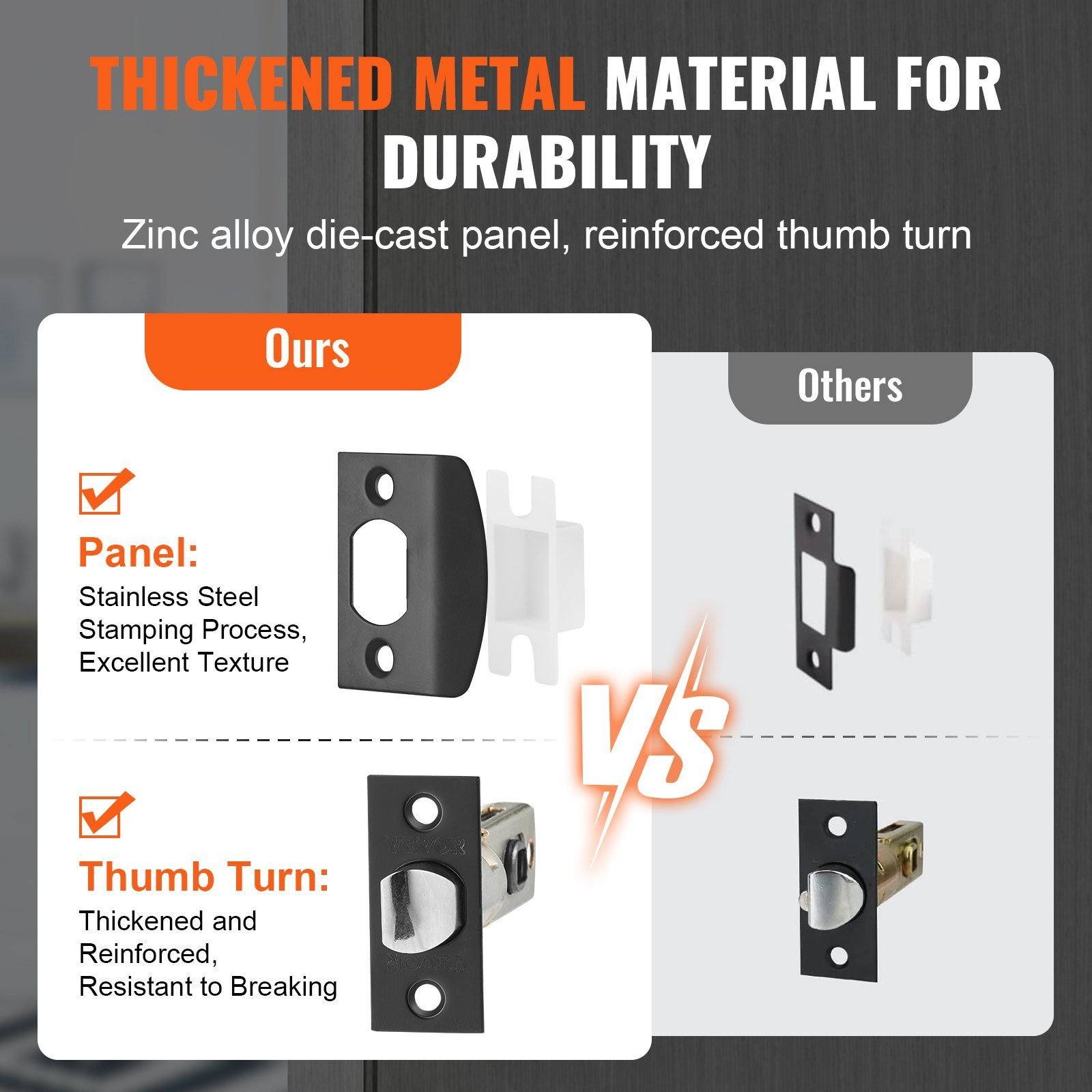 2.Built Tough for Longevity: The panel and internal handle are upgraded from stainless steel stamping to zinc alloy die-casting, providing a superior texture and high tensile strength. Our front door handle is highly resistant to rust and corrosion. The reinforced thumb turn and upgraded lever handle with a grooved design prevent handle breakage, ensuring long-lasting durability.